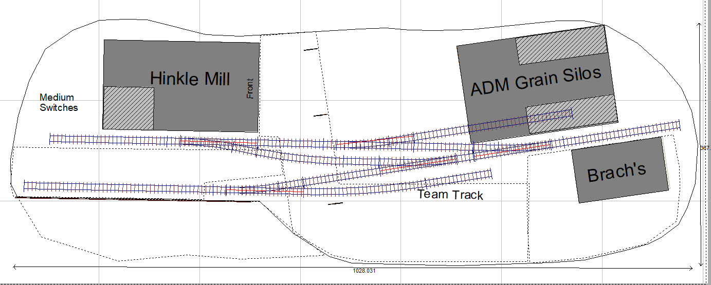 • Assemble the matching cars, in the order drawn, on the front (long) siding.